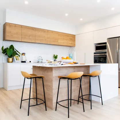 The kitchen is still the favourite place to gather and having that wide benchtop for friends and family to sit around is important for many kiwi families. The trend is towards a more seamless look with clean lines and no handles. Hidden appliances, like dish drawers, also help achieve a clutter-free look. Marble and wood finishes are becoming increasingly popular, adding a pop of colour is easily achievable.