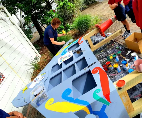 All it needed was a coat of paint. With a quick call to Dulux, they came to the party with a donation of special waterproof, Aqua Enamel paint for a hard-wearing, water-resistant finish which gave the base for a topcoat to be completed by the students. “In effect, we made the cake, and the kids iced it. I'm sure you will agree, there’s no cake without icing”. Charlie Meredith