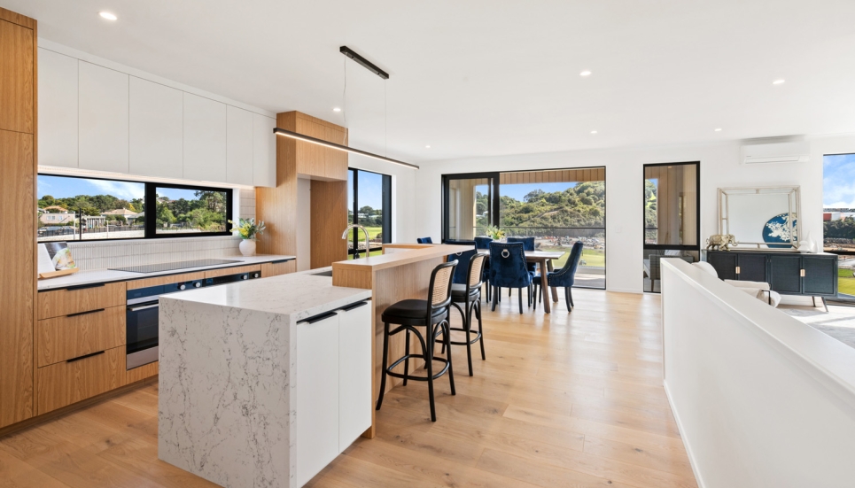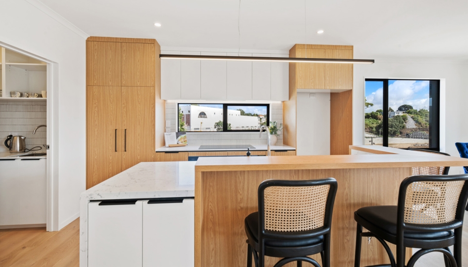 Open plan living and kitchen area is situated on the second floor, opening out to a covered patio with seamless alfresco dining perfect for entertaining family and friends. This unique, elevated outlook captures unobstructed views to Big King Reserve, an iconic landmark of Auckland City.