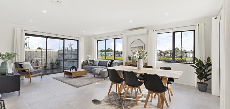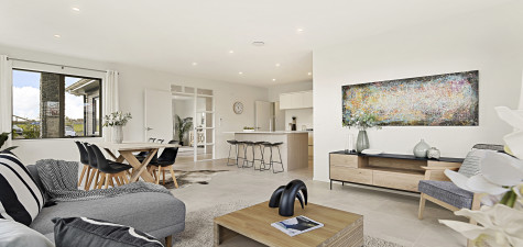 Our stunning Showhome is an architecturally designed single level home perfectly positioned on a corner site. As you enter this beautiful home you are welcomed by a bright foyer with a separate formal lounge to the left and an open-plan living, dining and island-bench kitchen to the right. The open-plan living opens up to an outdoor courtyard, which has a second entrance from the master bedroom.
