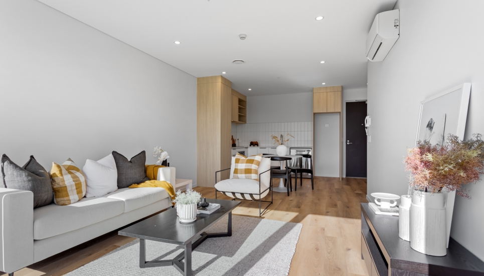 Located in Fletcher Living’s popular Te Uru Apartment complex, you couldn’t be better positioned with Hobsonville War Memorial Park and all the shops and cafes of Hobson Centre just over the road and the ferry terminal a 15 min walk away.