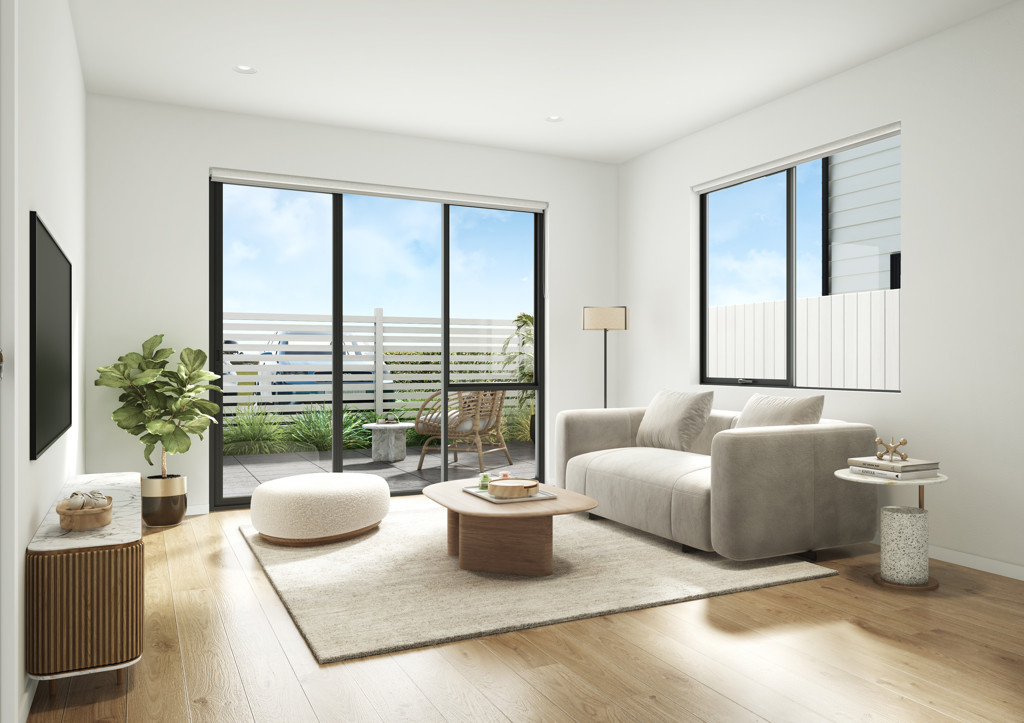 Located in our popular Te Uru Apartment complex, you couldn’t be better positioned with Hobsonville War Memorial Park and all the shops and cafes of Hobson Centre just over the road and the ferry terminal a 15 min walk away.