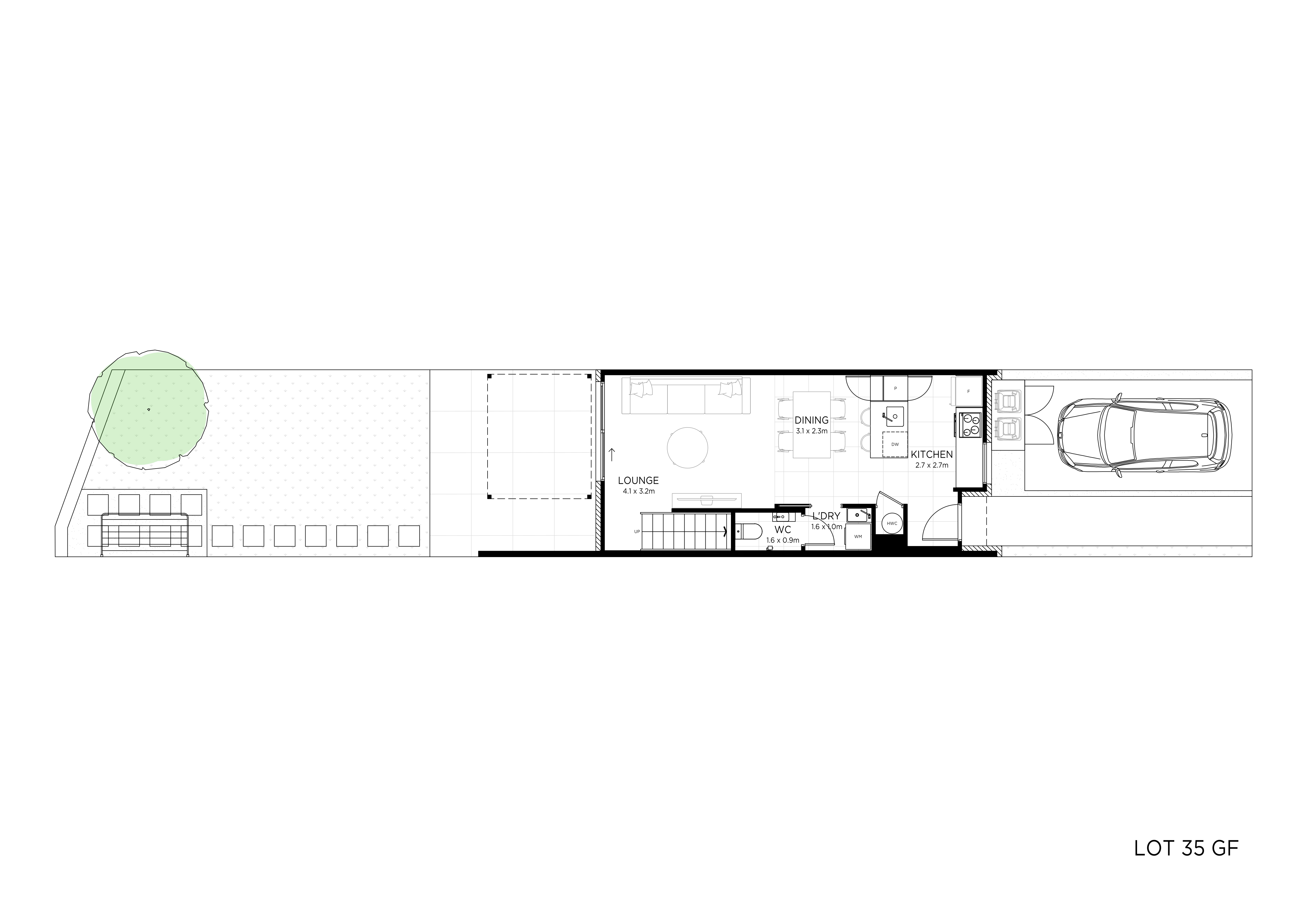 The open-plan kitchen seamlessly flows into the dining and lounge area, inviting you to experience the perfect blend of togetherness and relaxation. With indoor-outdoor access to spacious patios, it creates an ideal backdrop for memorable gatherings and everyday moments alike. A separate powder room under the stairs adds convenience for guests.