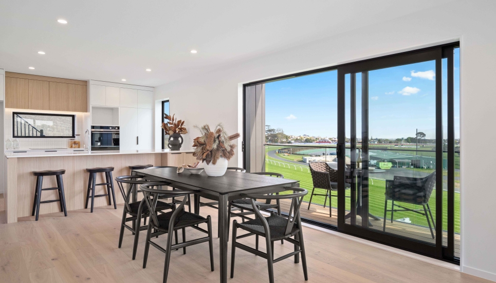 Step inside and you'll find a home that sets the pace in modern design - an open plan kitchen, dining and living area that takes full advantage of its elevated position. Slide open the doors to your private balcony overlooking the track and enjoy your own exclusive grandstand view of the racecourse below. On the opposite side, a north facing outdoor entertaining area provides the perfect sun-soaked retreat for barbecues, gatherings or simply unwinding after the day's race is run.