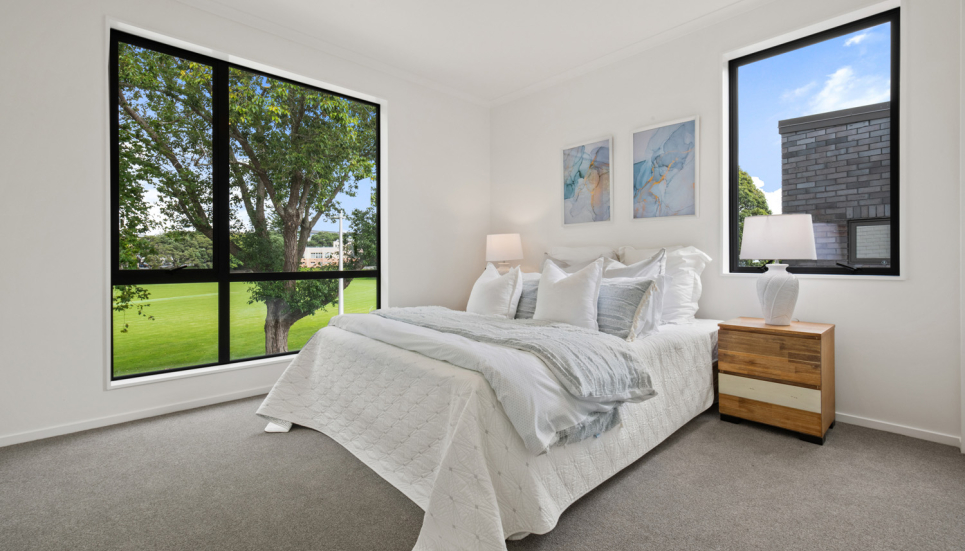 On the upper level, off the stair way, you land onto a light filled office area leading to four sizeable double bedrooms. This includes a master with walk in wardrobe and ensuite and a full family bathroom with bathtub. With unobstructed views over the sports field through to Te Tātua a Riukiuta (Big King), fringe city living has never been greener.