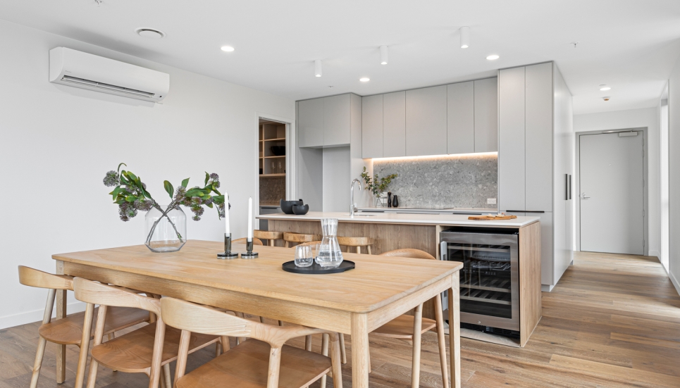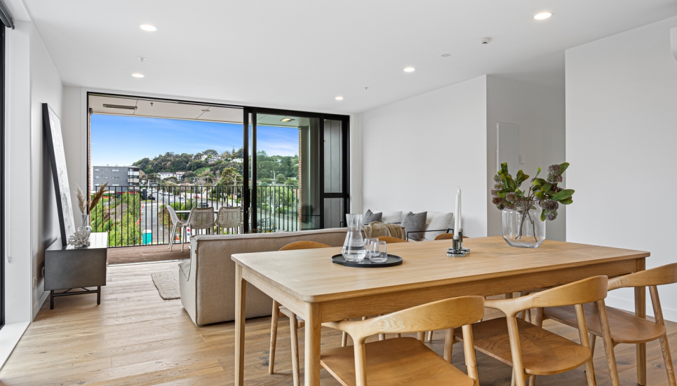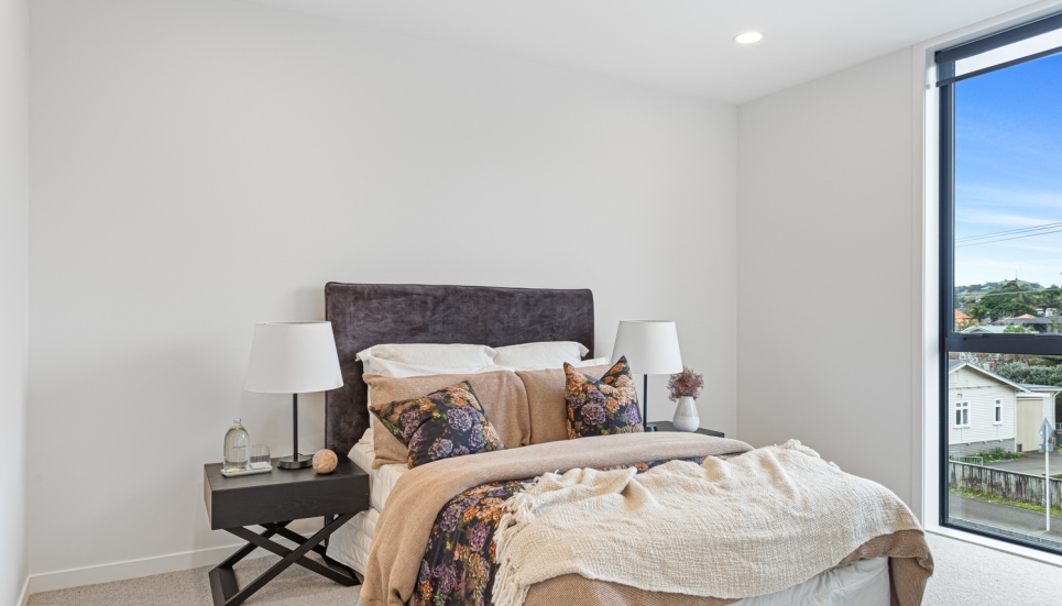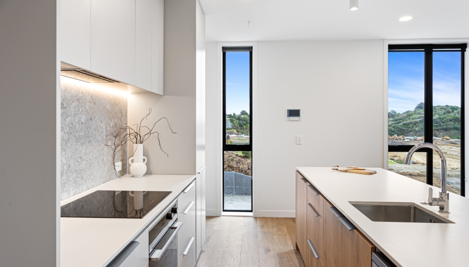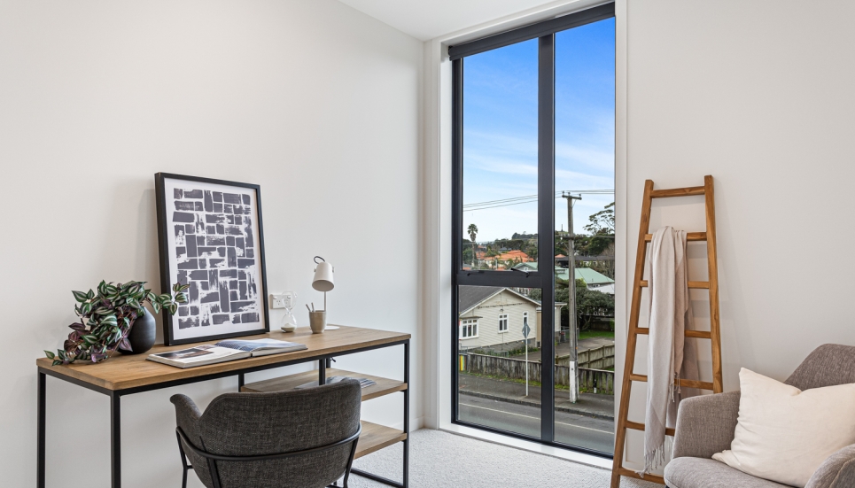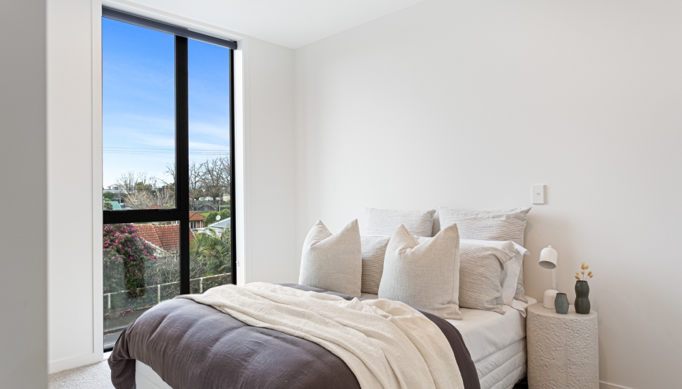 With floor-to-ceiling windows, this apartment is full of light and bright spaces and is orientated to make the most of the views of the maunga, parks and other green spaces. This apartment is made complete with good storage and two carparks.