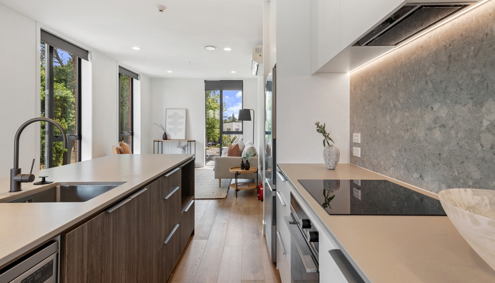 This lovely modern apartment offers a warm and inviting space that feels like home the moment you step inside. With an open-plan designer kitchen that flows effortlessly into spacious living and dining areas, the layout allows natural light to flood in, creating a bright and uplifting atmosphere. This generous two-bedroom, two-bathroom home, complete with a study nook, is designed for comfort and practicality, making it perfect for those looking to find solace in their living space.