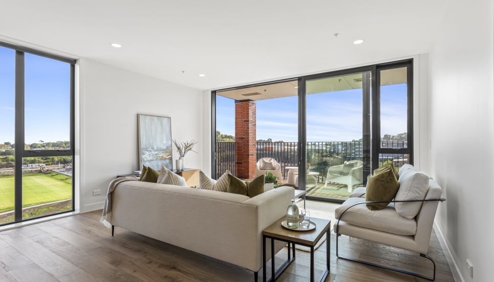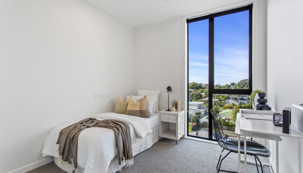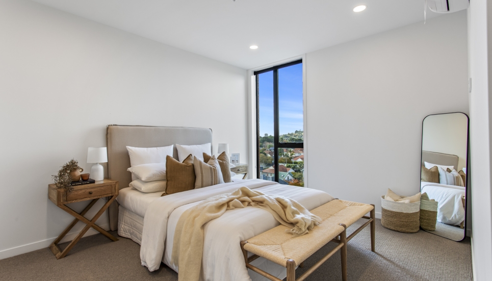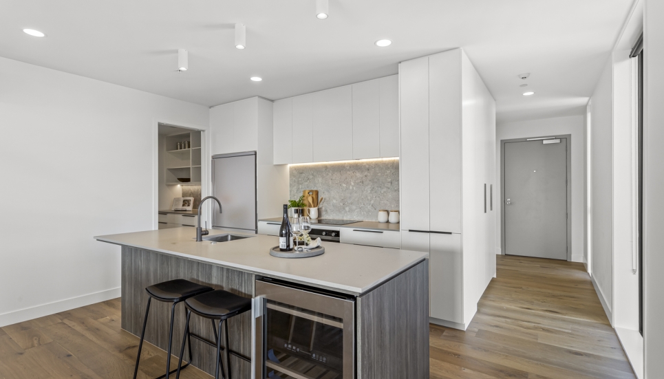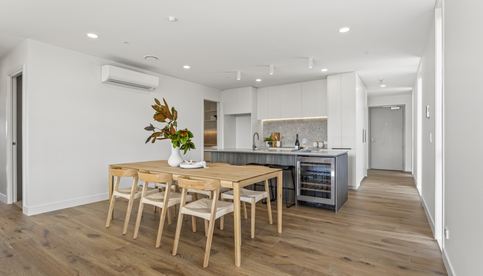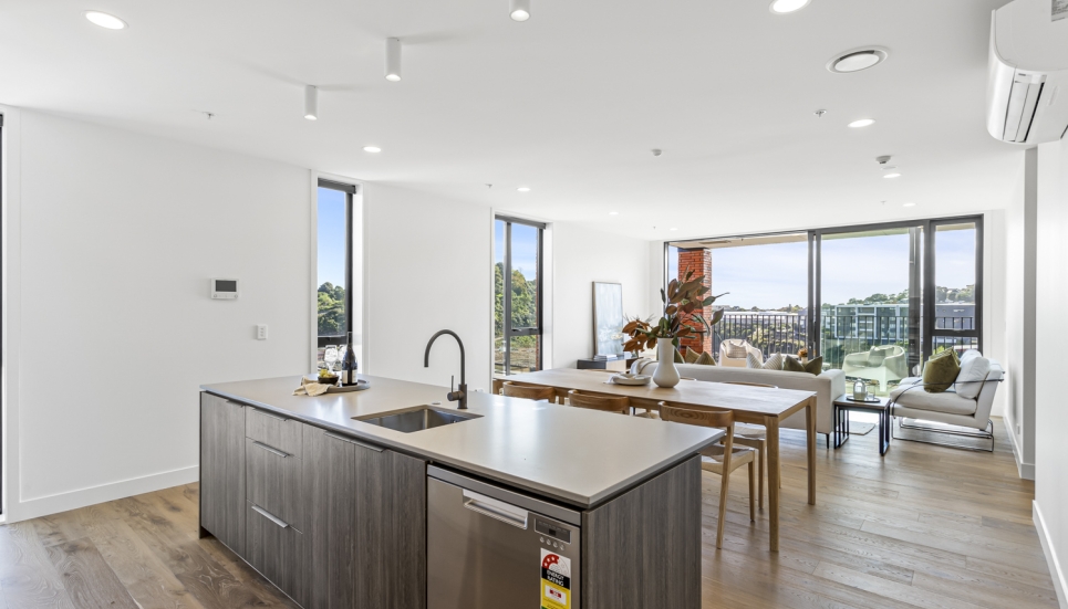 Showcasing a contemporary, modern design and a seamless light-filled open plan layout, this 3 bedroom (includes flexi/study) North facing apartment is built for modern-day living. With floor-to-ceiling windows, this apartment is full of light and bright spaces and is orientated to make the most of the views of the maunga, parks and other green spaces.