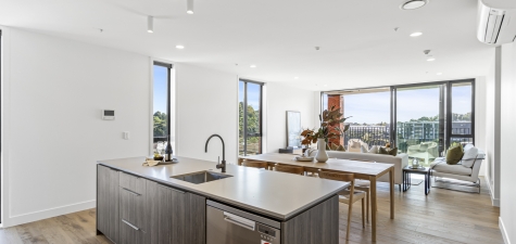 This modern apartment features an open-plan designer kitchen with living and dining areas that flow seamlessly out to the balcony, good storage and a carpark.