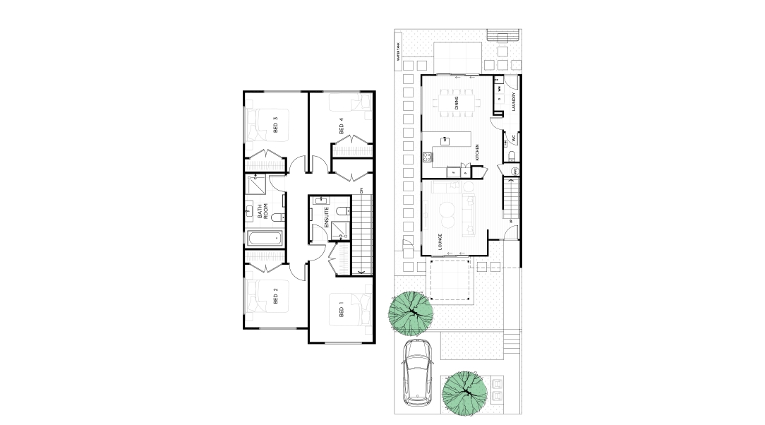 This end terrace home features four bedrooms including a spacious master bedroom complete with ensuite upstairs. Each bedroom has their own wardrobe space. Contemporary and modern, this family home has been designed with consideration of space and versatile living.