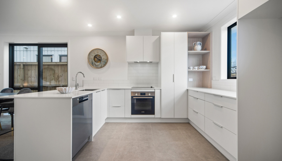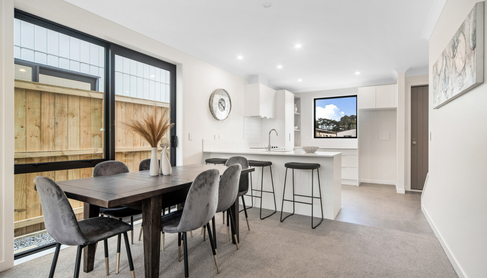 Our homes are built to a high standard, incorporating a European style kitchen with high quality kitchen appliances, open plan living and dining, engineered stone benchtop, fully landscaped, 10-year Master Build Guarantee.