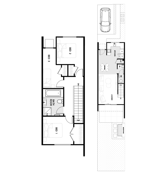 Our two-level three bedroom options on Koura Avenue, offer an excellent opportunity to purchase brand new in this well established quiet neighbourhood. Clever use of space is front of mind, with open plan living, kitchen and dining a key consideration. Indoor-outdoor flow happens seamlessly from both the lounge space to the outdoors perfect to enjoy the sunshine and easy care garden with a bit more yard space to unwind.