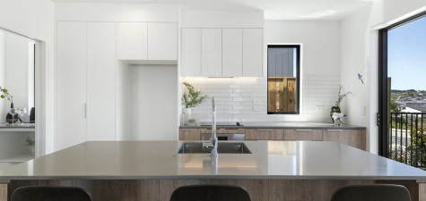 *European design kitchen with engineered stone island benchtop & butler's pantry