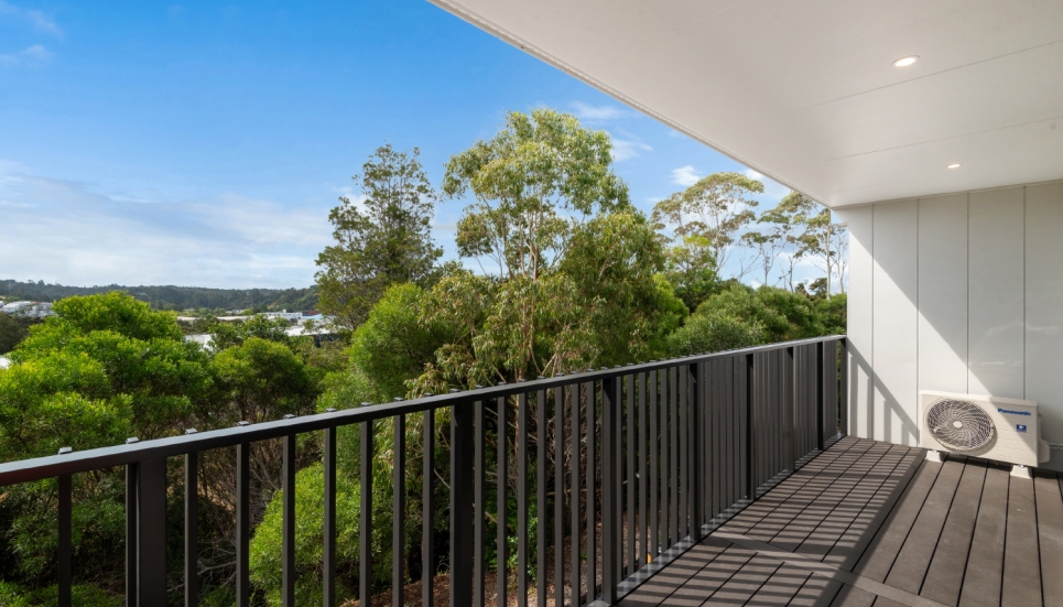 The large kitchen is a chef's dream, boasting a large benchtop that provides plenty of space for cooking and entertaining. The open-plan living, dining, and kitchen area creates a welcoming atmosphere, seamlessly extending to a private full-length balcony. This elevated balcony offers stunning views of greenery, and Albany, making it the perfect spot to relax and unwind.