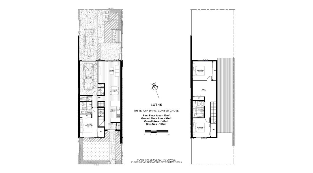 Two bedrooms are located in the upstairs area, with the downstairs master bedroom featuring a walk in wardrobe and ensuite. Upstairs also features modern family bathroom, ample storage and room for a second lounge space.