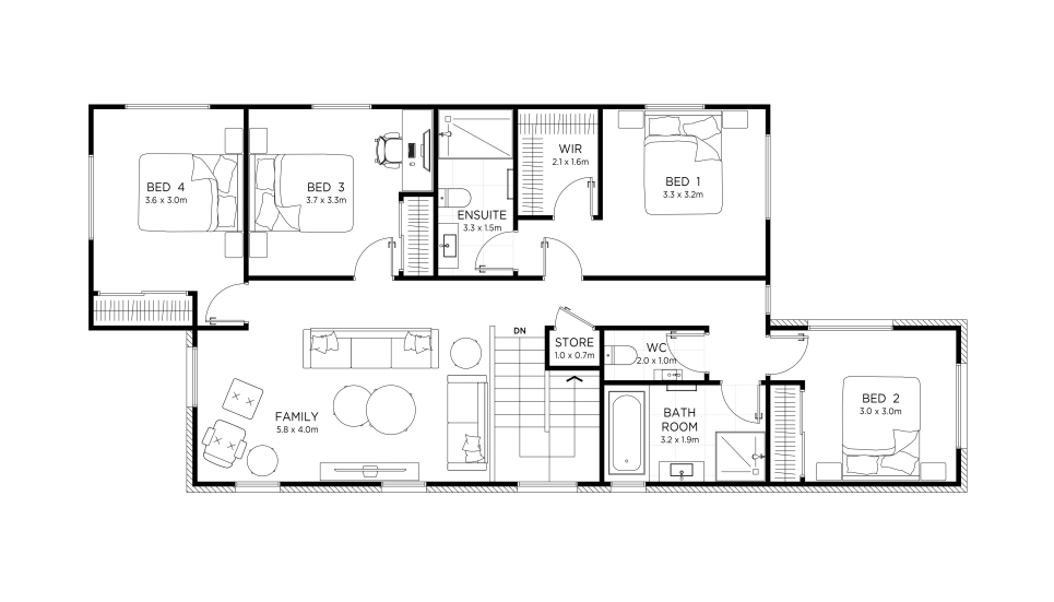 Four bedrooms are located in the upstairs area, each with its own wardrobe - a full family bathroom is also found on this level. On this level the master bedroom also includes walk in wardrobe and ensuite.