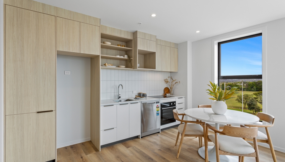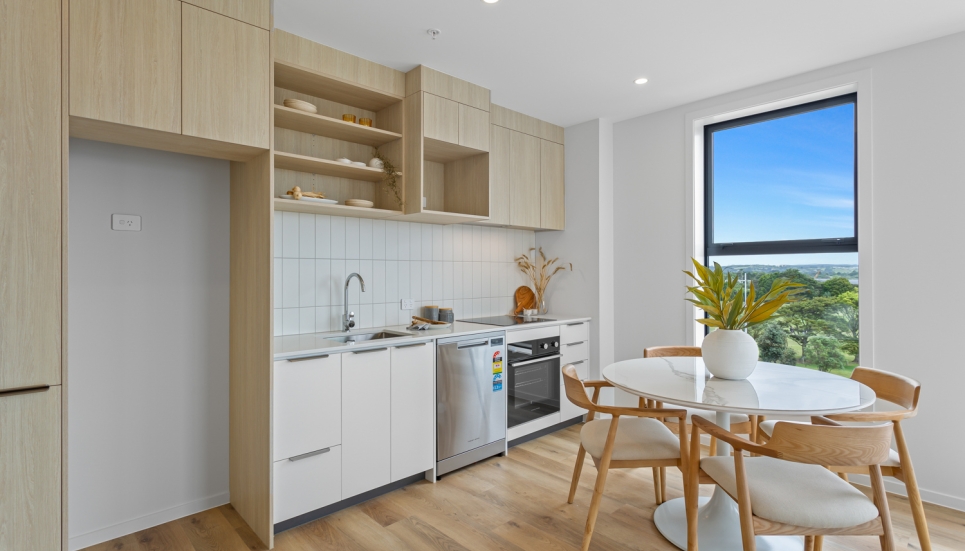 This brand-new, two-bedroom, two-bathroom apartment showcases a contemporary design with a spacious wrap-around outdoor area and a light-filled, open-plan layout. Located in our Te Uru Apartment complex, this modern home features a designer kitchen and a large living and dining area that extends seamlessly through sliding doors to a sun-filled large fully fenced yard .