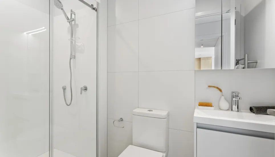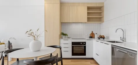 The open plan living/dining flows to a spacious north-west facing balcony via ranch sliders, ideal for entertainers or those looking for a quiet spot to unwind at the end of the day and soak up the views and the sun. A neutral colour palette, designer kitchen, generous bedrooms and two sleek contemporary bathrooms complete the picture.