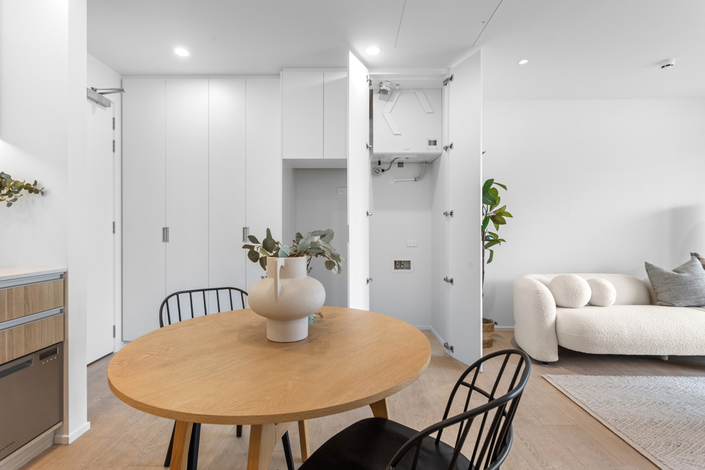 Perfect for downsizers, first home buyers or investors, these 2-bedroom, 1.5-bathroom homes, offer everything you need and more, nestled in a sought-after Lincoln location. Comfort, style, and convenience come together with thoughtful design and quality fittings. The well-appointed kitchen with feature pendant lighting, prime stone benchtops, Fisher & Paykel appliances, and feature cabinetry offers functionality, quality, and aesthetics. The ample laundry space with prime stone benchtop adds another well-designed feature and the generous linen cupboard offers further storage in the hallway. Open plan living with north to north-west facing concrete patio ensures easy indoor and outdoor flow for entertaining and relaxing, with the added exterior appeal of Rockcote and Linea cladding.