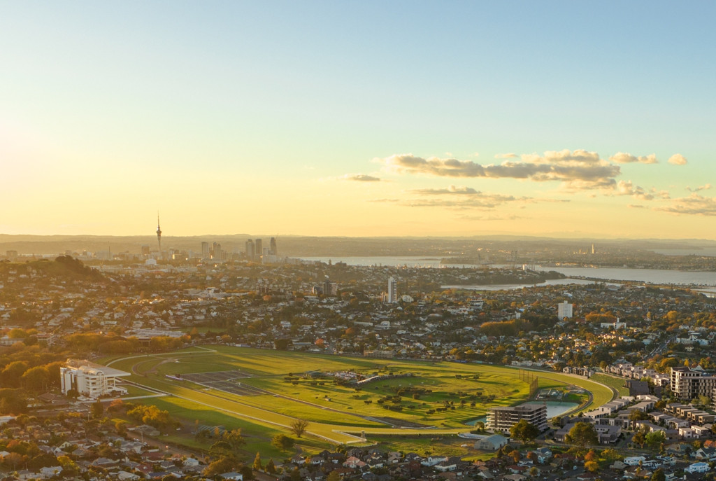 To the south, Ellerslie racecourse and One Tree Hill. To the north, the Hauraki Gulf and beyond.